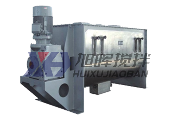 臥式螺帶混合機(jī)的傳動(dòng)主軸上布置雙層螺旋葉片,內(nèi)部螺旋將物料向外側(cè)輸送,外部螺旋將物料向內(nèi)部聚集。物料在雙層螺旋帶的對流運(yùn)動(dòng)下,形成一個(gè)低動(dòng)力的混合環(huán)境。安裝于攪拌軸上的內(nèi)外徑螺旋帶動(dòng)桶體內(nèi)物料,使攪拌器在桶體內(nèi)范圍翻動(dòng)物料。攪拌裝置工作時(shí)內(nèi)螺旋帶動(dòng)靠近軸心處物料做軸心旋轉(zhuǎn),軸向由內(nèi)至兩側(cè)推動(dòng),外螺旋帶動(dòng)靠近桶壁物料做軸心旋轉(zhuǎn),軸向由兩側(cè)至內(nèi)推動(dòng),本混合物料能夠在較短時(shí)間內(nèi)均勻混合。